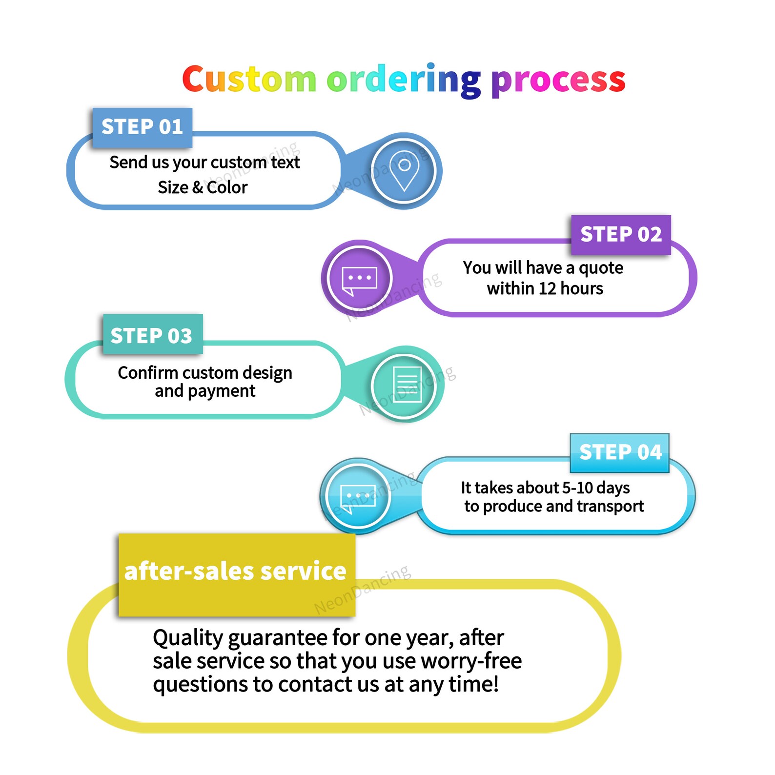 - NOT accept customize LED neon sign return or refund. If there is any problem, we will resend or send replacement part. Please consider before ordering. Thanks for understanding.