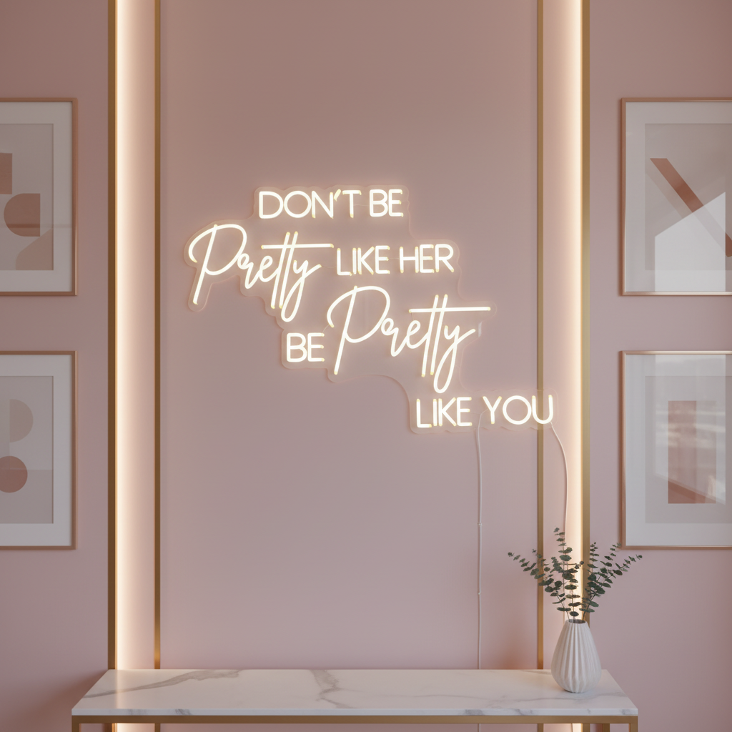 Don’t be pretty like her be pretty like you , Custom Beauty Studio Glow Up Sign