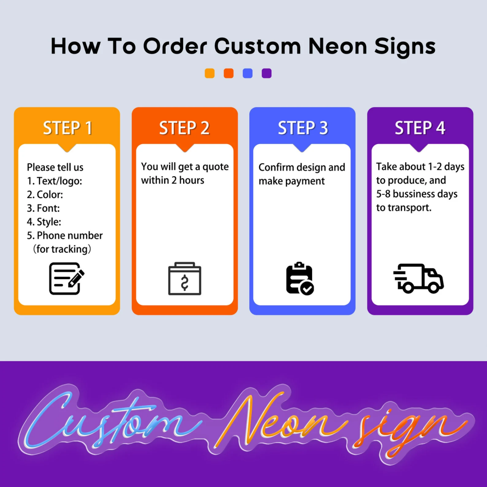 • Customized LED neon lights do not accept returns or refunds for non-quality issues.
